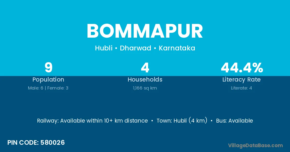 Hubli (4 km) is the nearest town to Bommapur village for major economic activities and is located approximately 4 km away.