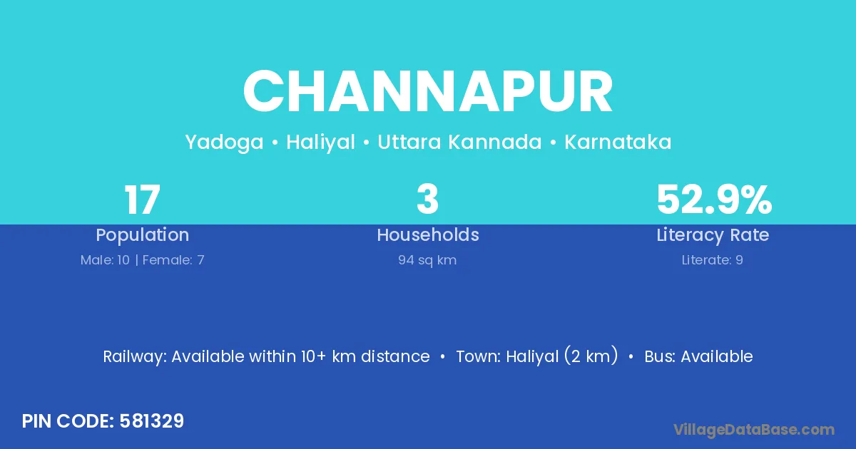 Hubli (12 km) is the nearest town to Channapur village for major economic activities and is located approximately 12 km away.
