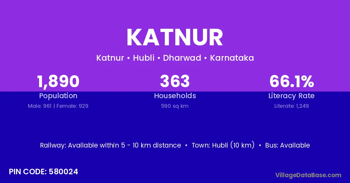Hubli (10 km) is the nearest town to Katnur village for major economic activities and is located approximately 10 km away.