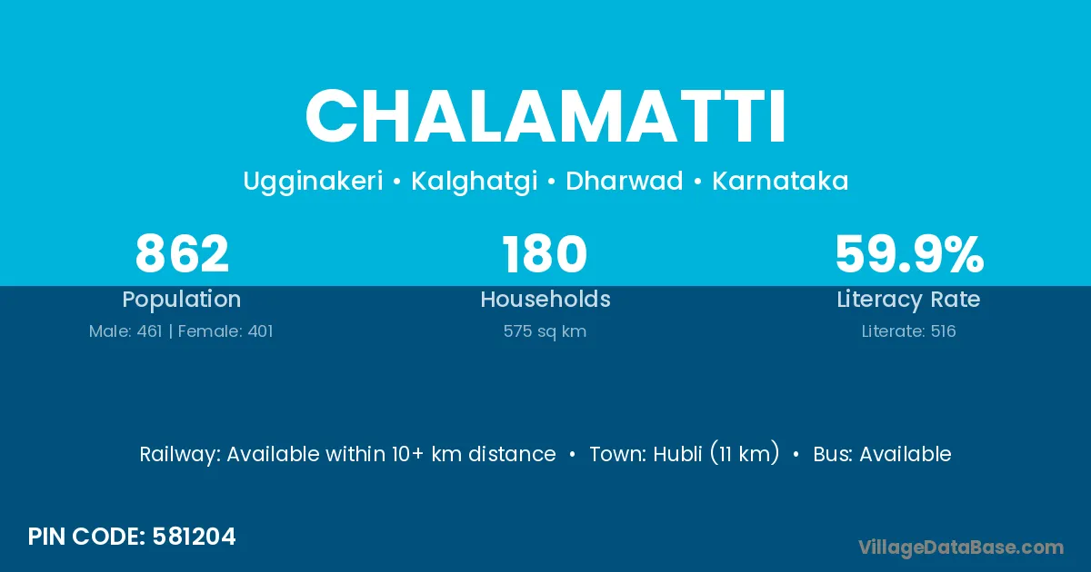 Hubli (11 km) is the nearest town to Chalamatti village for major economic activities and is located approximately 11 km away.