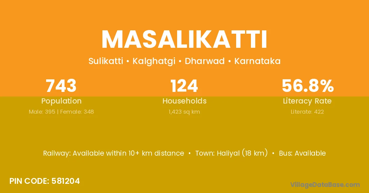 Haliyal (18 km) is the nearest town to Masalikatti village for major economic activities and is located approximately 18 km away.