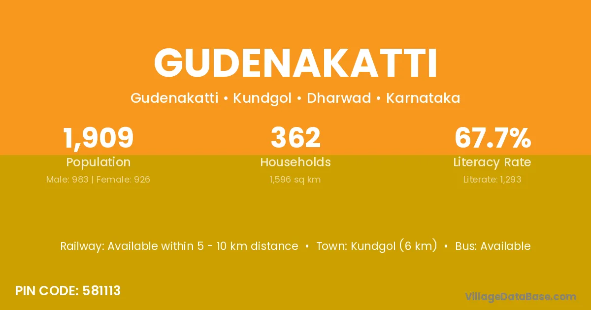 Kundgol (6 km) is the nearest town to Gudenakatti village for major economic activities and is located approximately 6 km away.