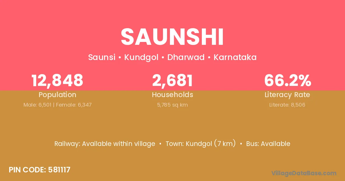 Saunshi village has a total population of 12,848 people, of which 6,501 are males and 6,347 are females.