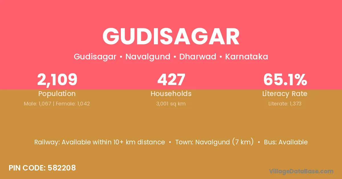 Navalgund (7 km) is the nearest town to Gudisagar village for major economic activities and is located approximately 7 km away.