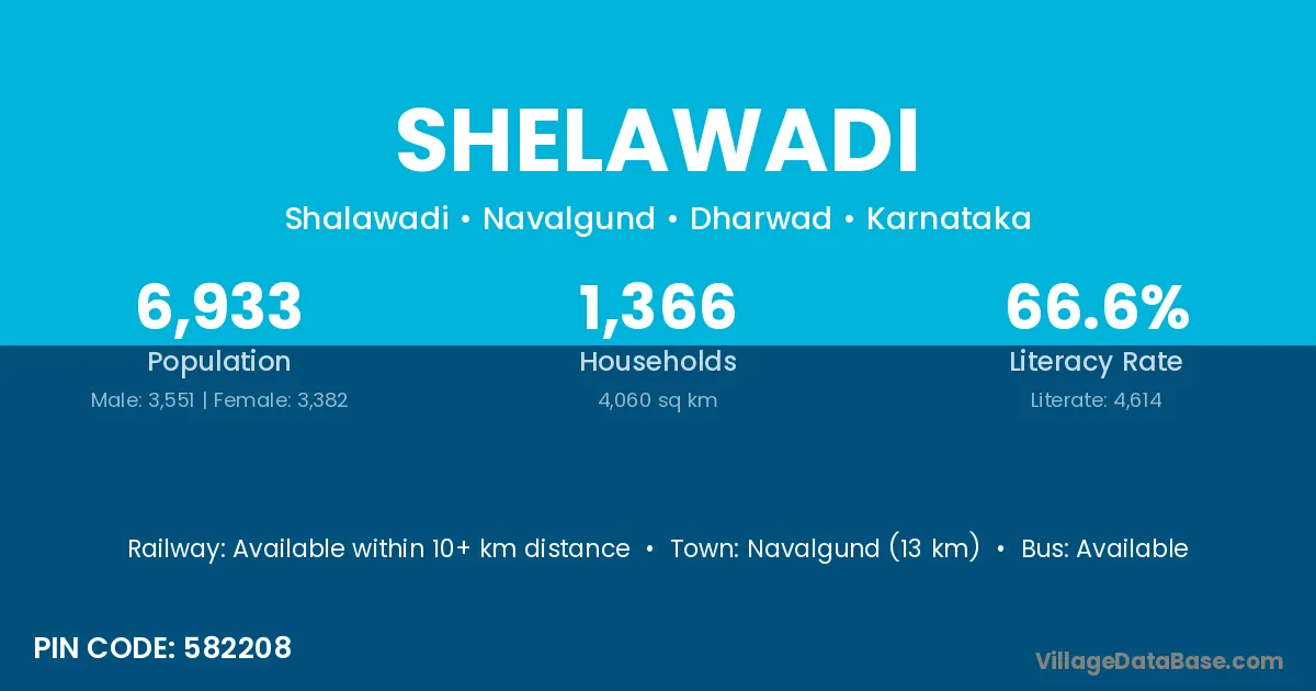 Navalgund (13 km) is the nearest town to Shelawadi village for major economic activities and is located approximately 13 km away.