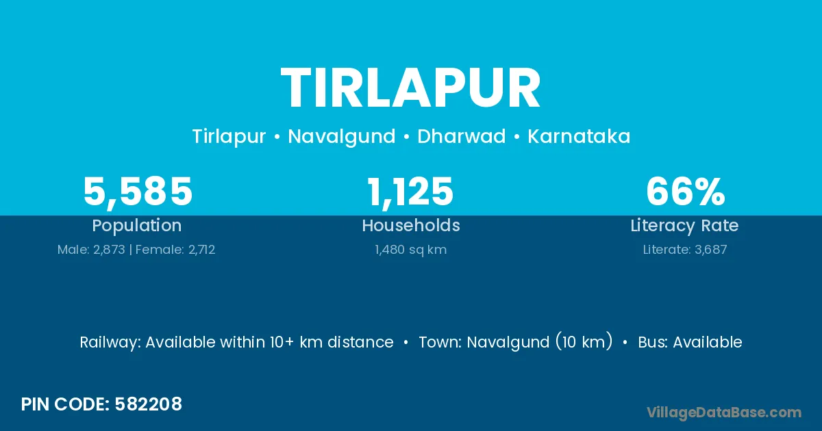 Navalgund (10 km) is the nearest town to Tirlapur village for major economic activities and is located approximately 10 km away.