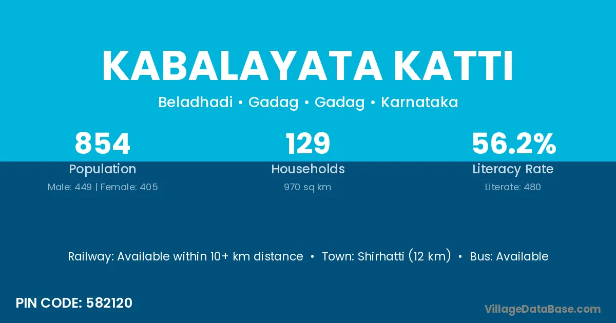 Shirhatti (12 km) is the nearest town to Kabalayata Katti village for major economic activities and is located approximately 12 km away.