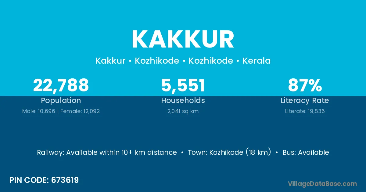 The literacy rate of Kakkur village is 64.84%. Male literacy stands at 73.33% and female literacy at 55.53%.