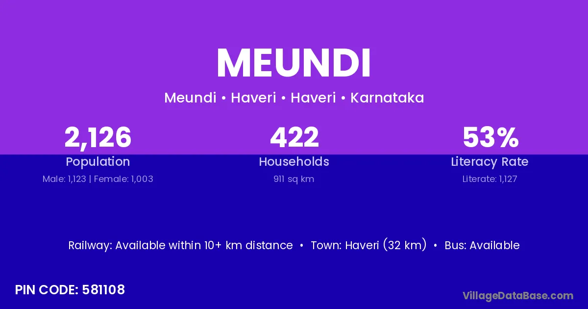 Mundargi (10 km) is the nearest town to Meundi village for major economic activities and is located approximately 10 km away.