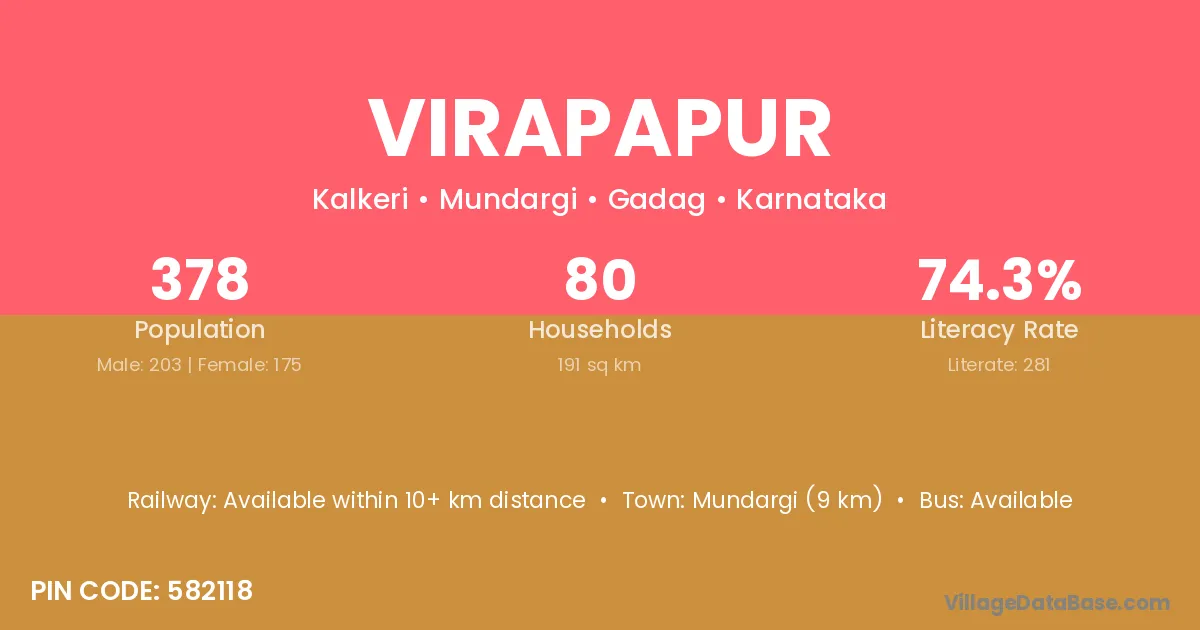 Virapapur village has a total population of 378 people, of which 203 are males and 175 are females.