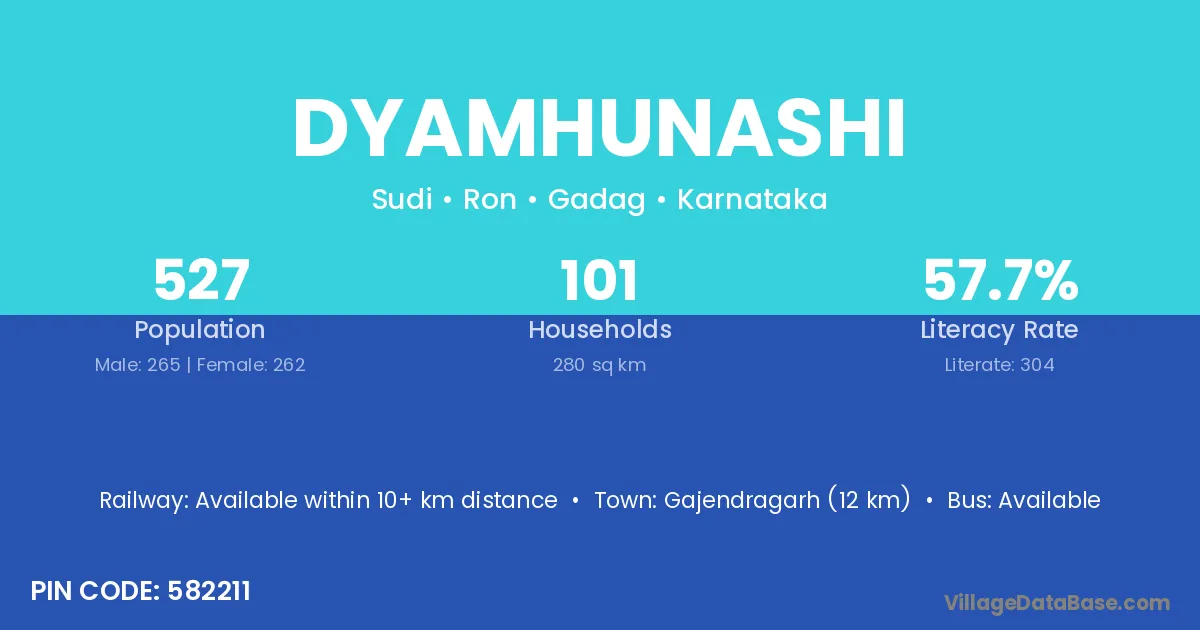 Dyamhunashi village has a total population of 527 people, of which 265 are males and 262 are females.