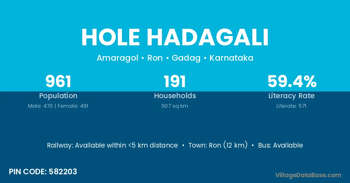 Ron (12 km) is the nearest town to Hole Hadagali village for major economic activities and is located approximately 12 km away.