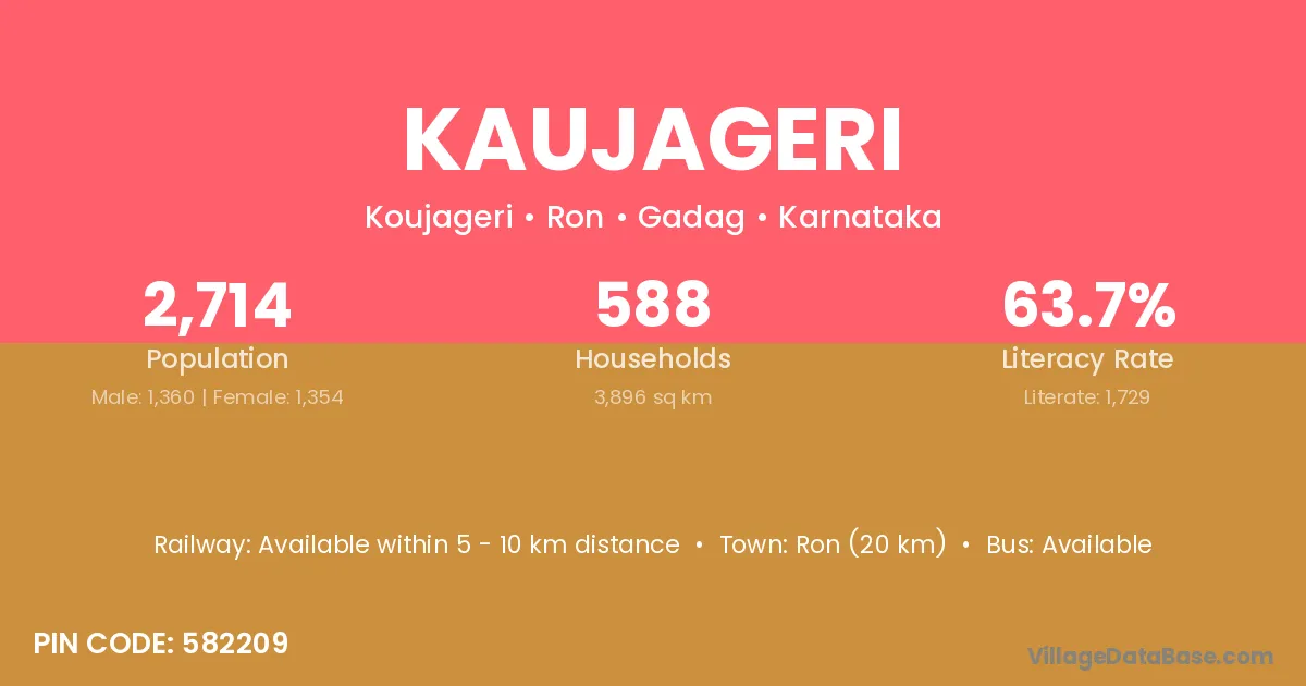Ron (20 km) is the nearest town to Kaujageri village for major economic activities and is located approximately 20 km away.