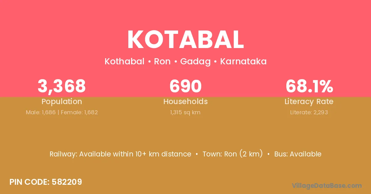 Ron (2 km) is the nearest town to Kotabal village for major economic activities and is located approximately 2 km away.