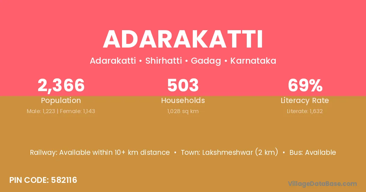 Lakshmeshwar (2 km) is the nearest town to Adarakatti village for major economic activities and is located approximately 2 km away.
