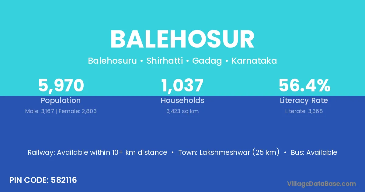 Lakshmeshwar (25 km) is the nearest town to Balehosur village for major economic activities and is located approximately 25 km away.