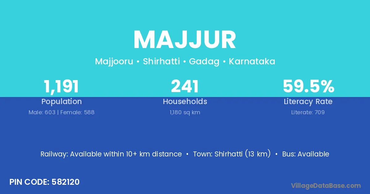 Shirhatti (13 km) is the nearest town to Majjur village for major economic activities and is located approximately 13 km away.