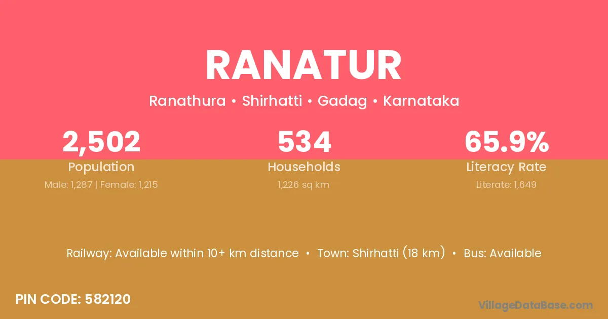 Shirhatti (18 km) is the nearest town to Ranatur village for major economic activities and is located approximately 18 km away.