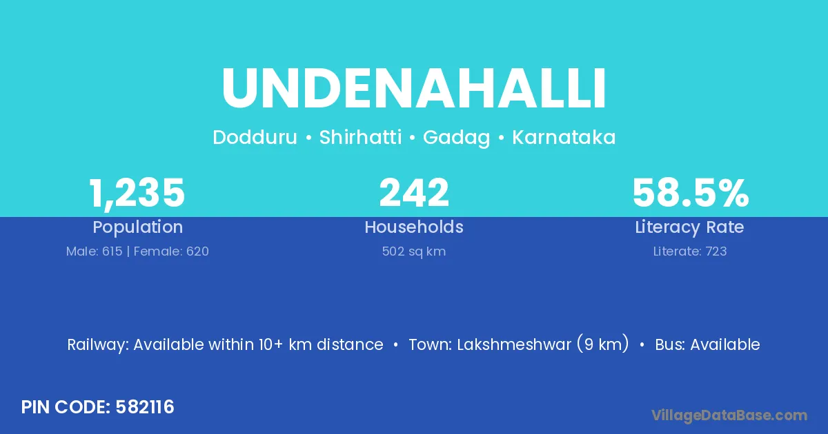 Lakshmeshwar (9 km) is the nearest town to Undenahalli village for major economic activities and is located approximately 9 km away.