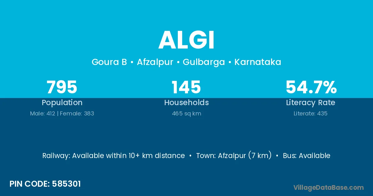 Afzalpur (7 km) is the nearest town to Algi village for major economic activities and is located approximately 7 km away.
