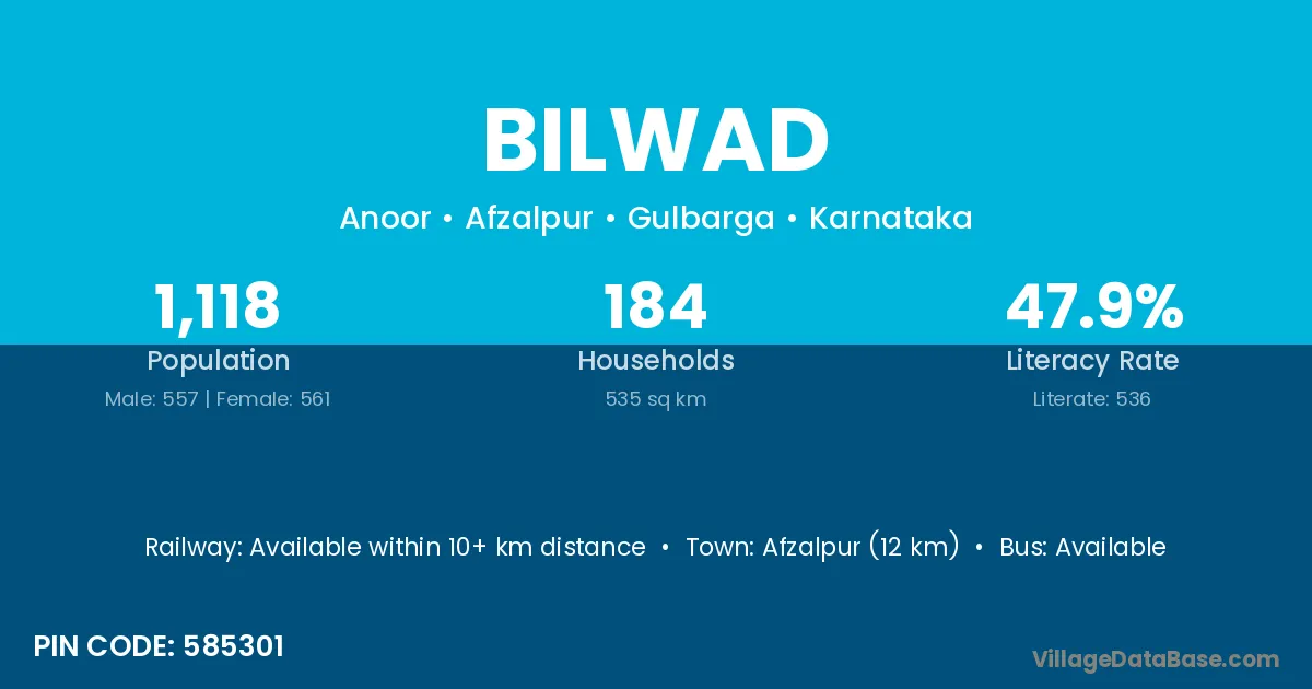 Afzalpur (12 km) is the nearest town to Bilwad village for major economic activities and is located approximately 12 km away.