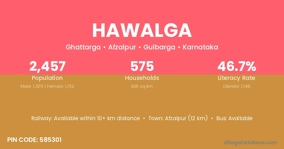 Afzalpur (12 km) is the nearest town to Hawalga village for major economic activities and is located approximately 12 km away.