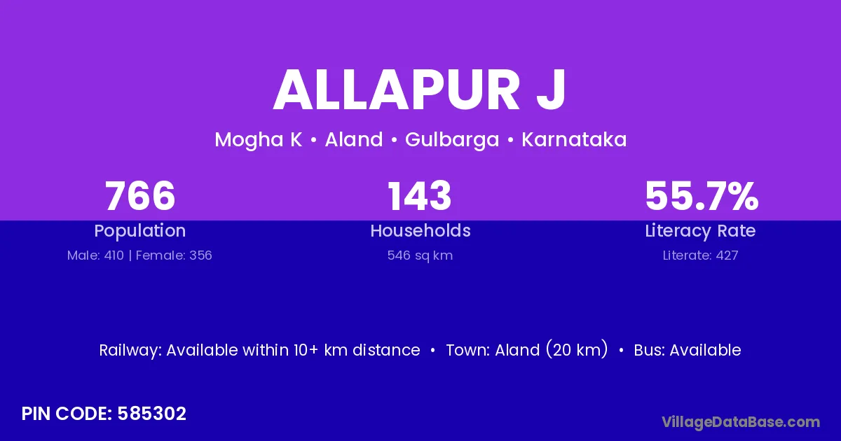 Aland (20 km) is the nearest town to Allapur J village for major economic activities and is located approximately 20 km away.