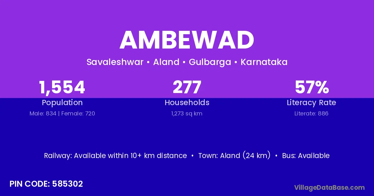 Aland (24 km) is the nearest town to Ambewad village for major economic activities and is located approximately 24 km away.