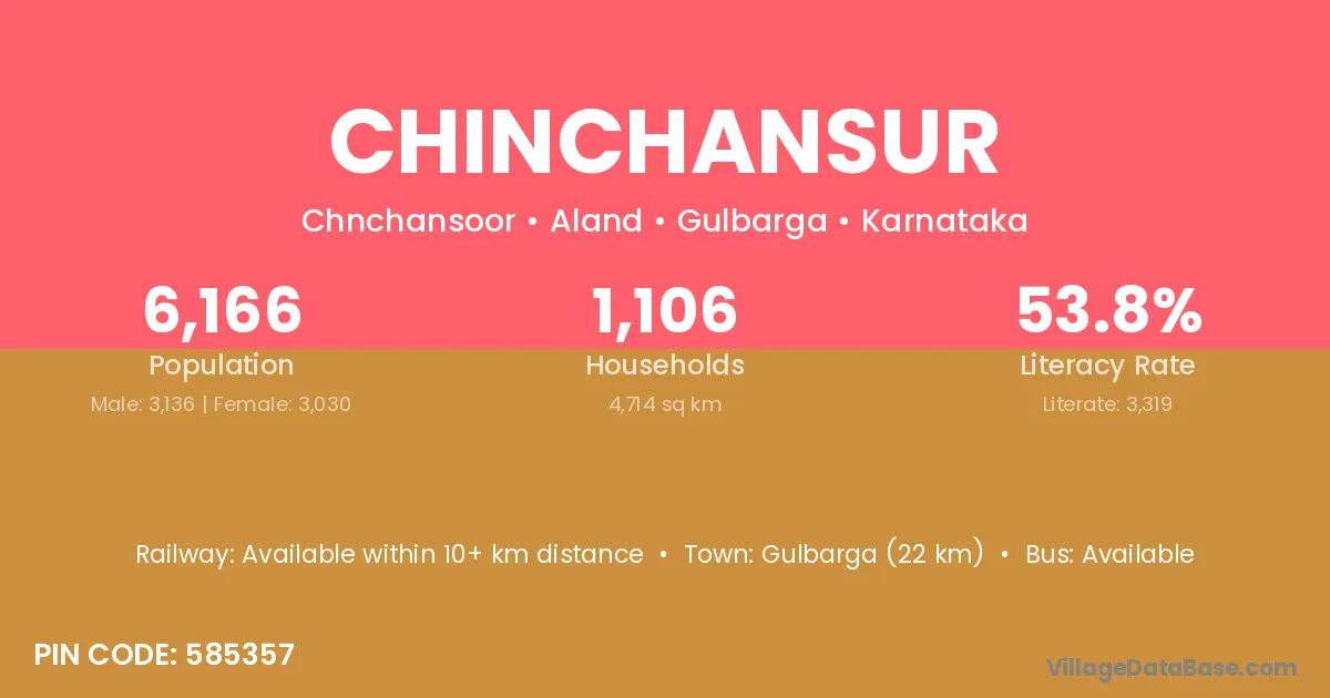 Gulbarga (22 km) is the nearest town to Chinchansur village for major economic activities and is located approximately 22 km away.