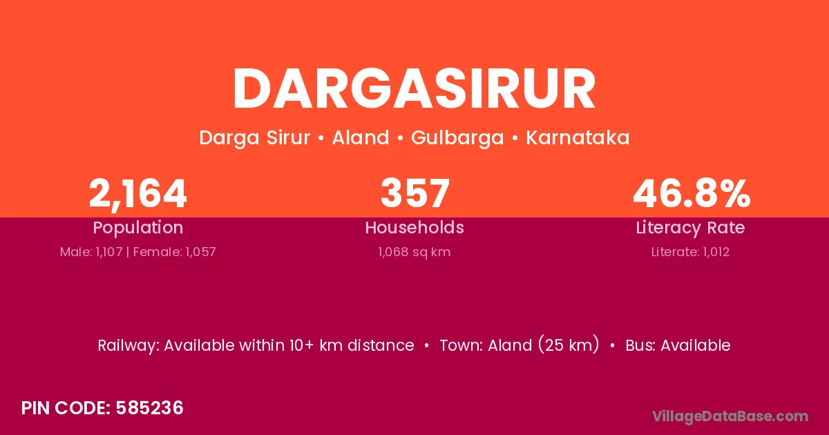 Aland (25 km) is the nearest town to Dargasirur village for major economic activities and is located approximately 25 km away.
