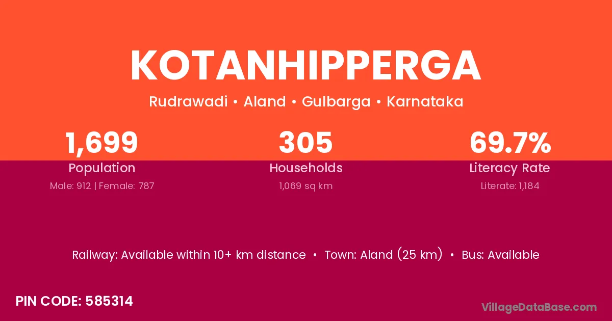 Aland (25 km) is the nearest town to Kotanhipperga village for major economic activities and is located approximately 25 km away.