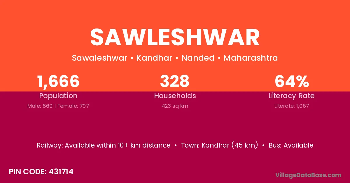 Aland (18 km) is the nearest town to Sawleshwar village for major economic activities and is located approximately 18 km away.