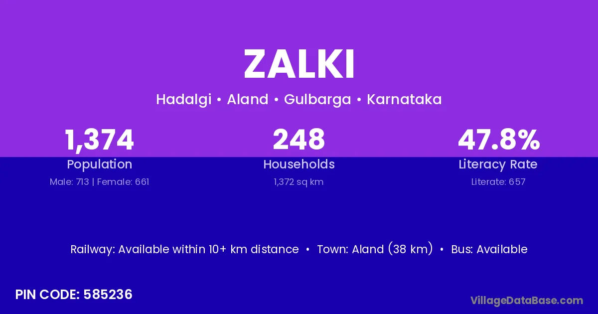 According to Census 2011 information, the village code of Zalki village is 585236.
