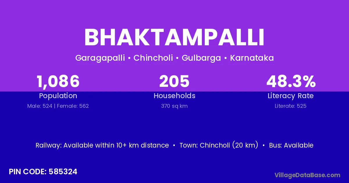 Chincholi (20 km) is the nearest town to Bhaktampalli village for major economic activities and is located approximately 20 km away.