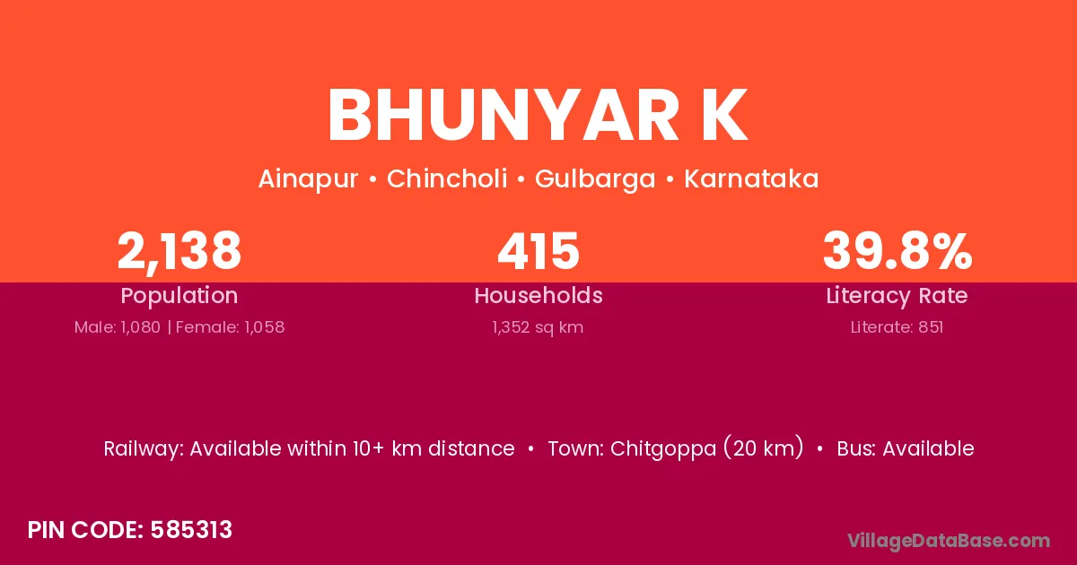 Chitgoppa (20 km) is the nearest town to Bhunyar K village for major economic activities and is located approximately 20 km away.