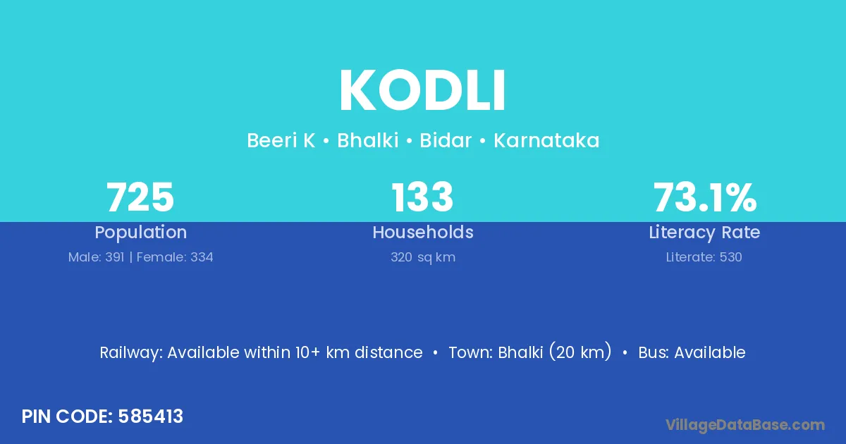 Chincholi (28 km) is the nearest town to Kodli village for major economic activities and is located approximately 28 km away.