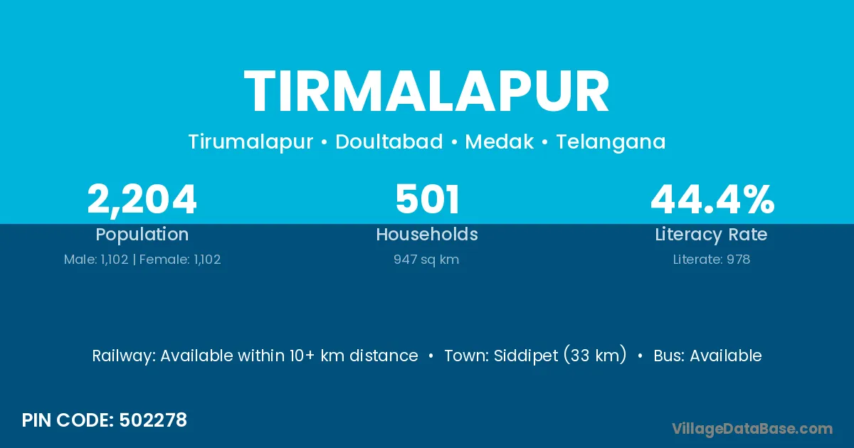 Chincholi (11 km) is the nearest town to Tirmalapur village for major economic activities and is located approximately 11 km away.
