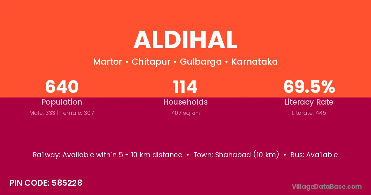 Aldihal village has a total population of 640 people, of which 333 are males and 307 are females.