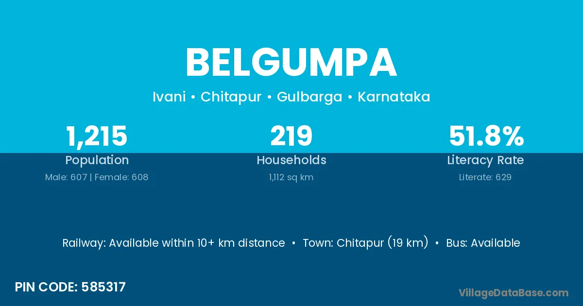 Chitapur (19 km) is the nearest town to Belgumpa village for major economic activities and is located approximately 19 km away.