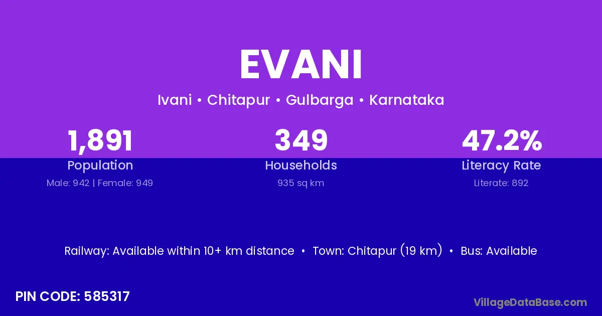 Chitapur (19 km) is the nearest town to Evani village for major economic activities and is located approximately 19 km away.