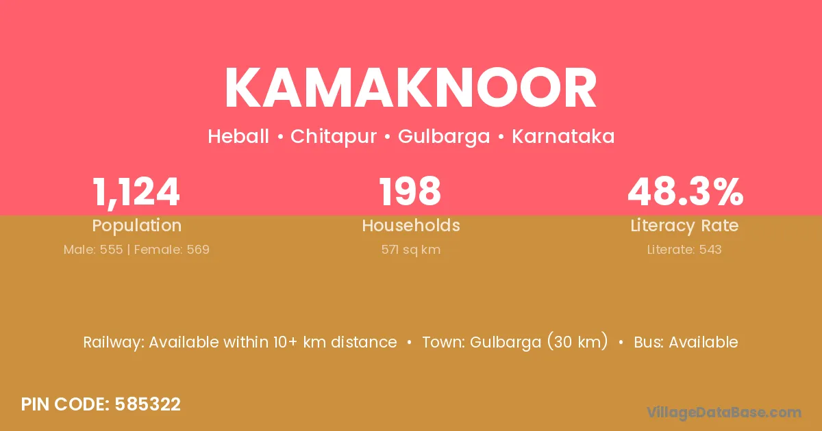 According to Census 2011 information, the village code of Kamaknoor village is 585322.