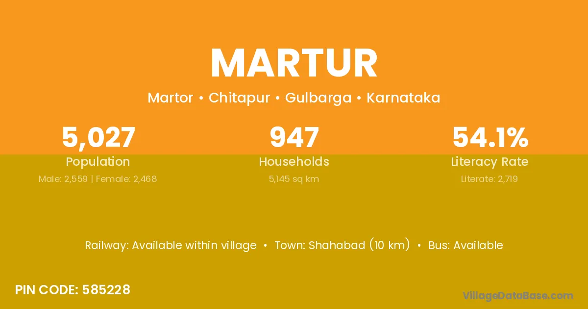 Shahabad (10 km) is the nearest town to Martur village for major economic activities and is located approximately 10 km away.