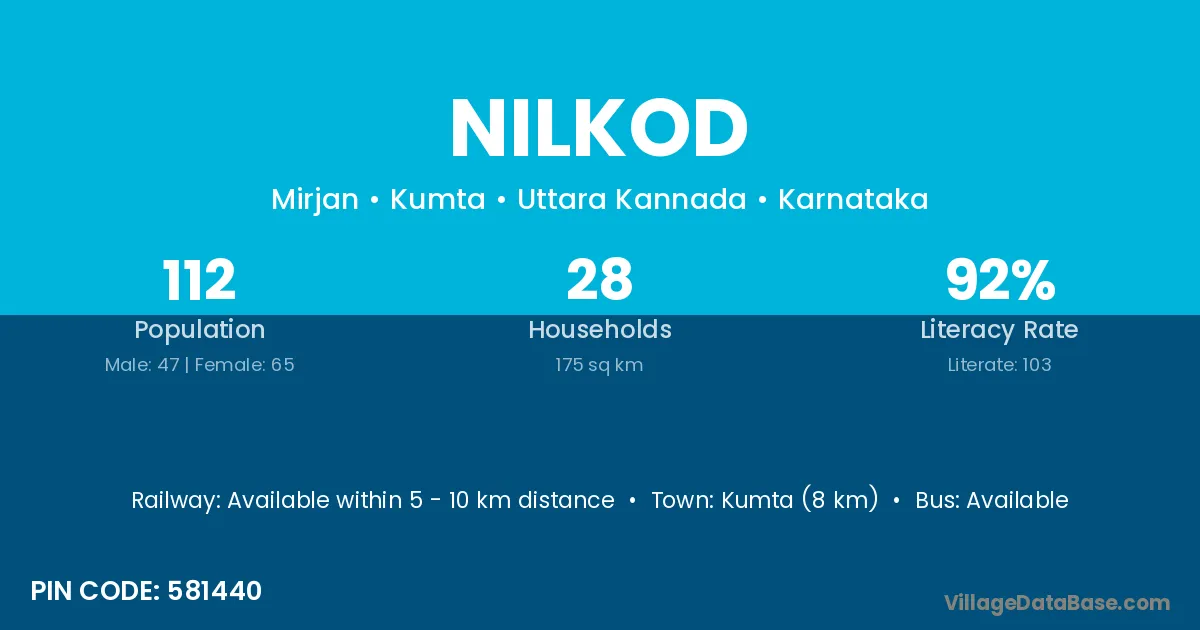 Humnabad (12 km) is the nearest town to Nilkod village for major economic activities and is located approximately 12 km away.