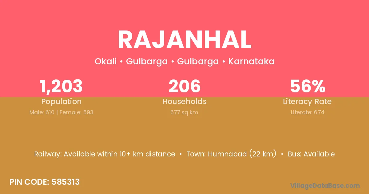 Humnabad (22 km) is the nearest town to Rajanhal village for major economic activities and is located approximately 22 km away.