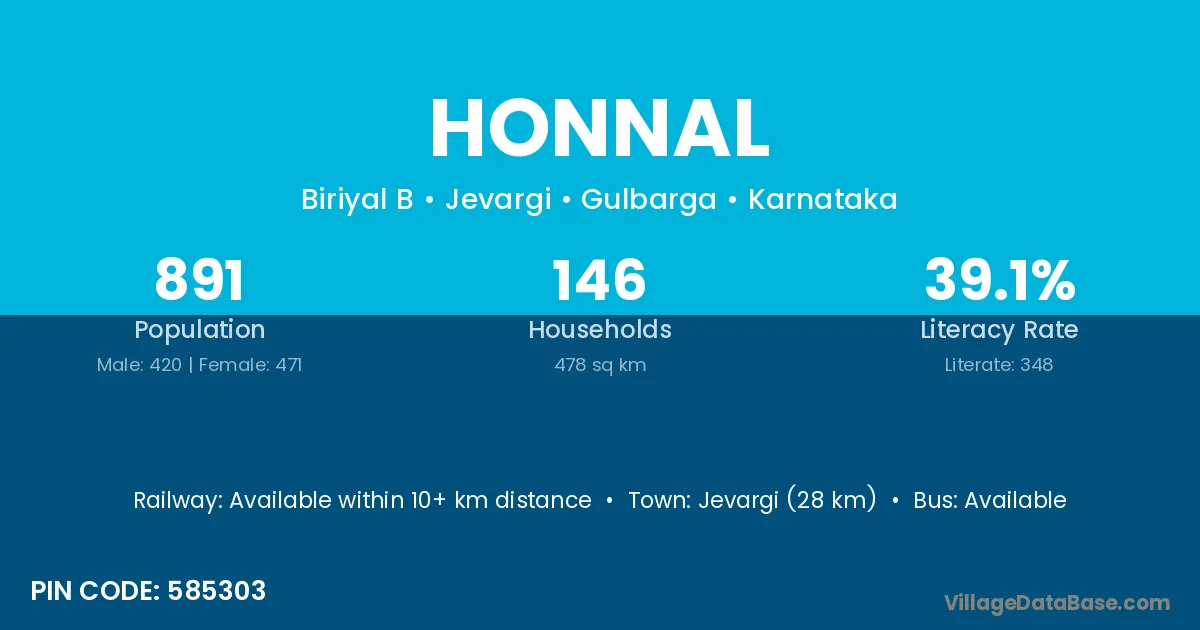 Jevargi (28 km) is the nearest town to Honnal village for major economic activities and is located approximately 28 km away.