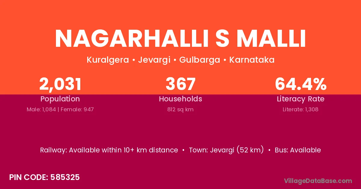 Jevargi (52 km) is the nearest town to Nagarhalli S Malli village for major economic activities and is located approximately 52 km away.
