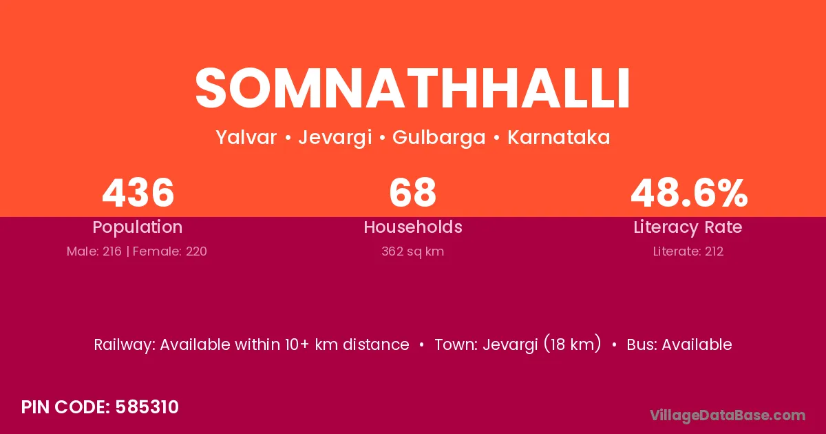Somnathhalli village has a total population of 436 people, of which 216 are males and 220 are females.