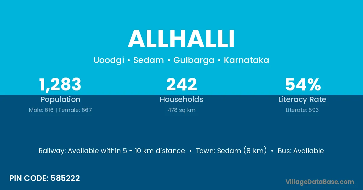 Sedam (8 km) is the nearest town to Allhalli village for major economic activities and is located approximately 8 km away.