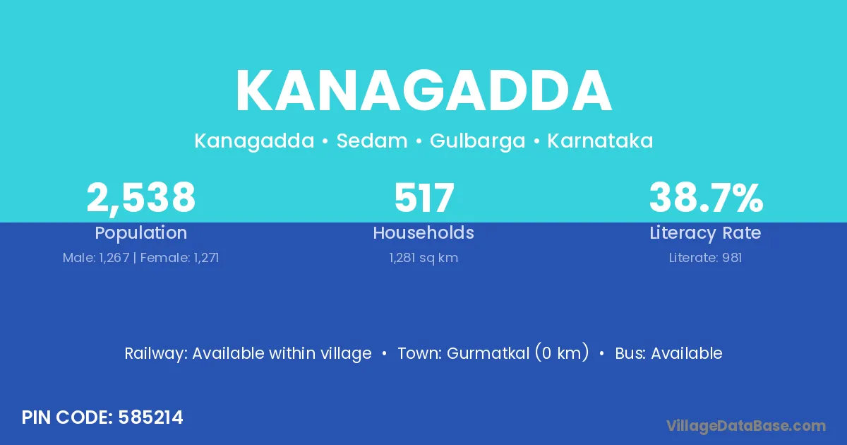 Gurmatkal (0 km) is the nearest town to Kanagadda village for major economic activities