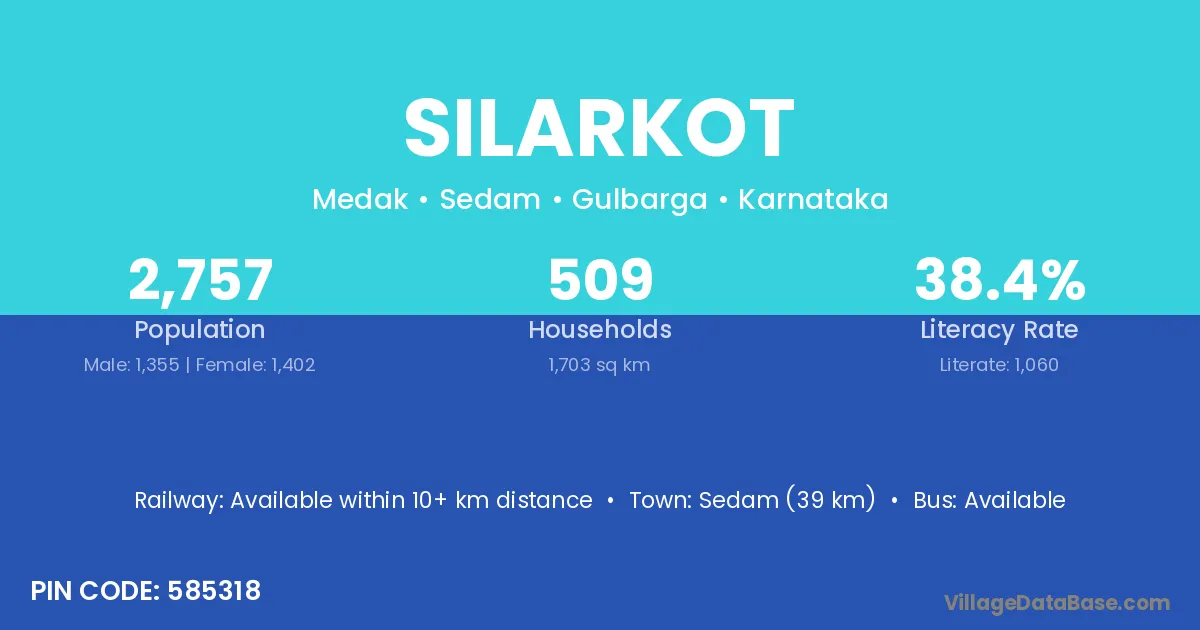 Sedam (39 km) is the nearest town to Silarkot village for major economic activities and is located approximately 39 km away.
